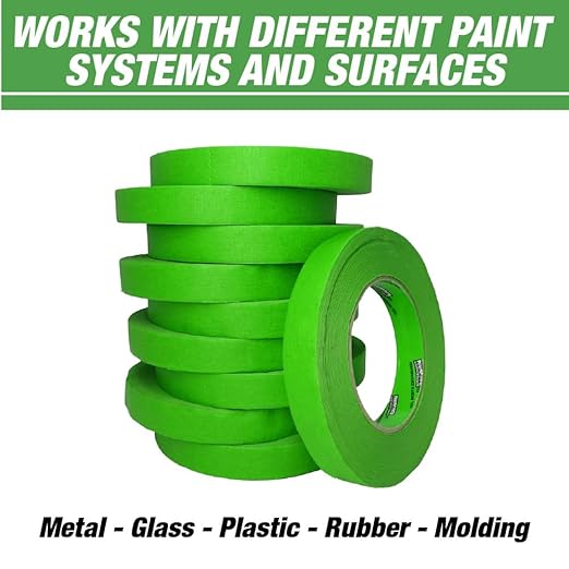 LAUCO DINOGREN High Performance Masking Tape for Car Paint, Heat & Water Resistant, Multi-Purpose Green (0.75 in (6 Rolls))