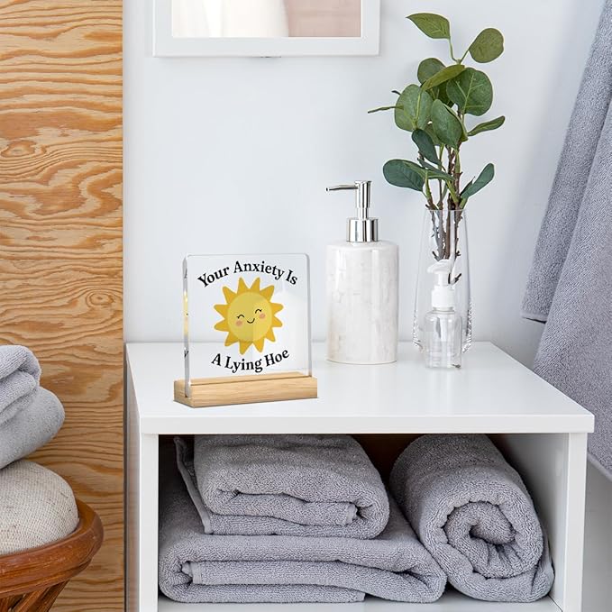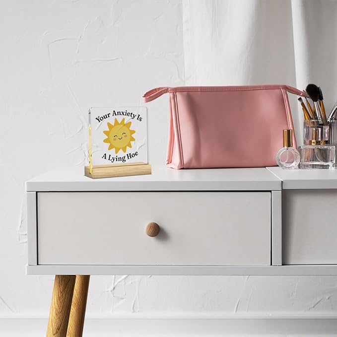 - 【Perfect Size】This acrylic measures approximately 4 x 4 inches (get a 4" x 4" acrylic sign, a 4" x 1.5" x 0.8" wooden stand, and a gift box), which can decorate any desktop.