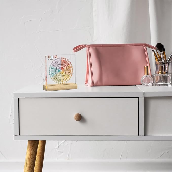 Mental Health Office Desk Decor, Therapy Office Decor, Mental Health Gifts for Women School Counselor Psychologist Therapist, Feelings Wheel Acrylic Sign for Halloween Christmas Gift