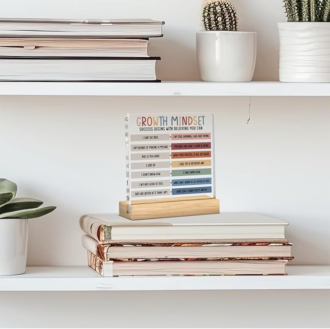 Therapy Office Decor, School Counselor Gifts, Counselor Office Desk Decor, Gifts for Women Therapist Psychologist School Counselors, Halloween Christmas Gift Growth Mindset Acrylic Sign