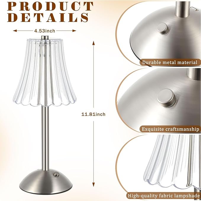 - Sturdy and Reliable Material: the vintage rechargeable lamp is mainly made of alloy, which is sturdy and not easy to break; The top is equipped with a solid white acrylic lampshade (not glass), more reliable and safer for families or pets; It is equipped with a USB charging cable to facilitate charging