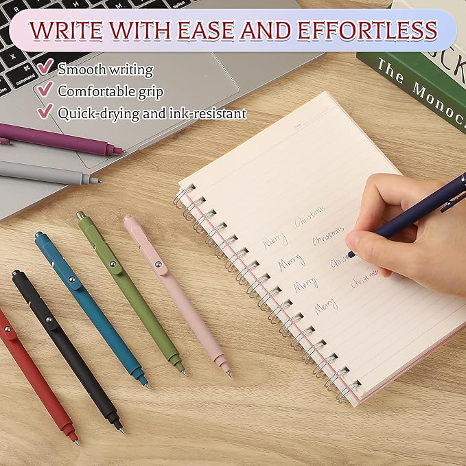 - CLIP AND RETRACTABLE DESIGN--Lightweight colored pens for school with a practical clip on the cap that prevents it from rolling off the table and can be easily attached to books, notepads, or bags, so you always have your pen handy. This gel pen adopts a retractable design. When not in use, press the end of the pen to retract the tip, preventing ink from staining books or pockets.