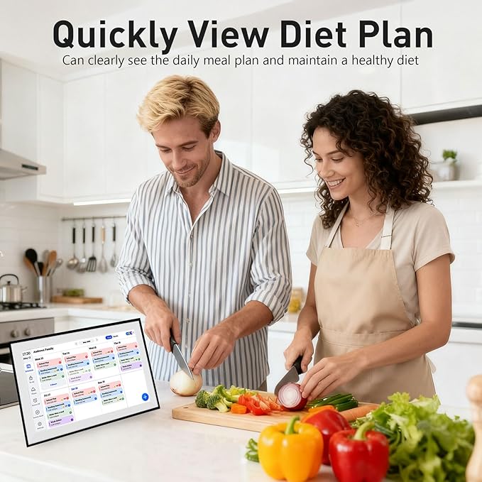 - 【Touchscreen Interaction】 Intuitive touchscreen interface lets you swipe, tap, and manage your photos and schedules directly on the frame. Use it as a photo slideshow, family planner, or both.