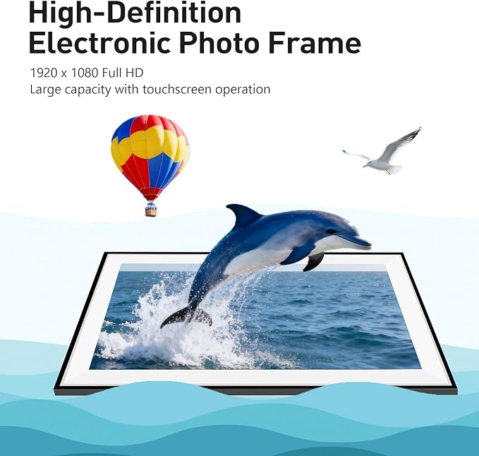 - 【Large Digital Photo Frame】 Showcase your favorite photos in vivid detail on this 15.6" touchscreen display. Perfect for living rooms, kitchens, offices, or hallways, turning any space into a personalized gallery.