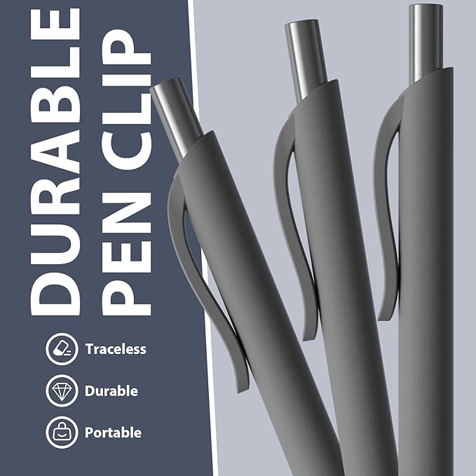 - 【Practical & Simple Design】Secure Clip & No Mess Design– can firmly clip the soft grip black ink gel click pen bulk to a book, notebook or bag, easy to carry, without worrying about losing; retractable design, gently press the cap, the pen end automatically retracts.