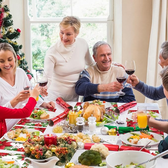 - Package Includes:You will get 50 premium merry christmas dining table mats ensure you have enough placemats to entertain all your guests, with poinsettia flowers and holly leaves on them, perfect for your party while keeping the party setup neat and stylish.