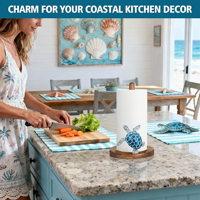 - 【NIQUE MARINE-THEMED GIFT】: The countertop paper towel holder can not only be used to decorate tabletops for nautical-themed kitchen,but also makes a thoughtful present for anyone who appreciates marine-themed or Sea turtle decor. Perfect for Christmas,winter gatherings, birthdays, anniversaries, house warming gifts new home or other special occasions.