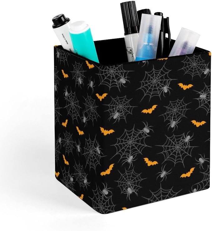 Square Pen Holder & Pencil Organizer for Desk - Office Storage Organizer, Markers/Makeup Brushes/Scissors Holder, Compact Desk Decor Accessories for Home Classroom School(Bat)