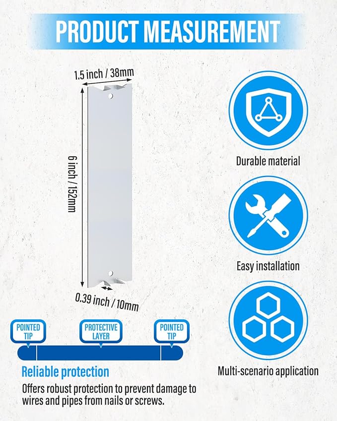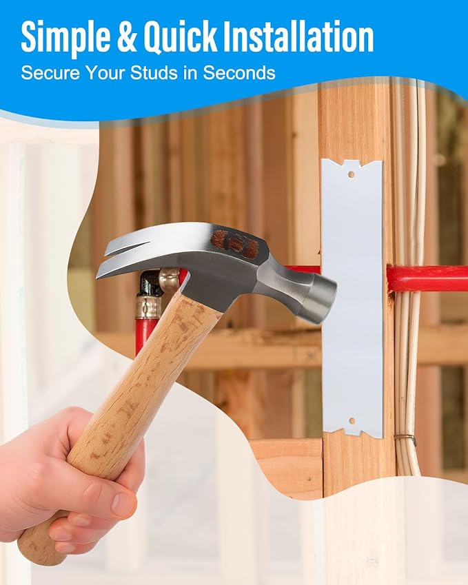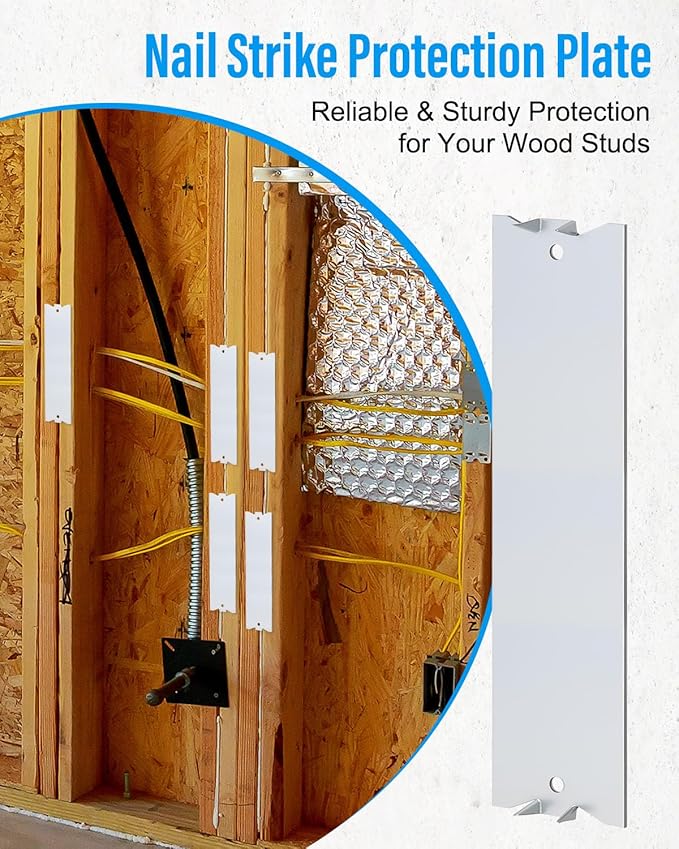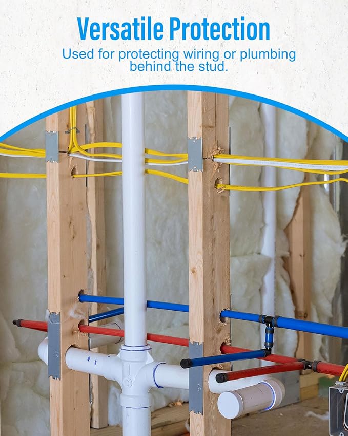 - Superior Protection for Wood Studs - Designed to protect internal wiring, cables, and pipes from nail and screw punctures, these nail plates shield electrical wiring, plumbing, and HVAC systems, ensuring safety and structural stability