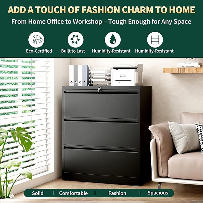 - 【Humanized Design】: The steel ball bearing full extension drawer of the lateral file cabinet slide, high-quality ball bearing glides for easy to open and close the drawers. Experience ultimate convenience with our filing cabinet's humanized design features, allowing you to work without disturbing others and maintaining a peaceful environment.