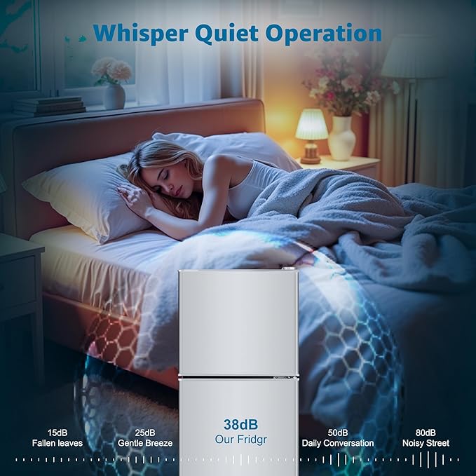- 【Whisper-Quiet & Energy-Efficient】Experience tranquility and efficiency with this dorm fridge. Its innovative design ensures silent operation, minimizing noise when accessing the fridge. Advanced noise-reducing components provide a peaceful home environment. Additionally, its low energy consumption makes it an ideal choice for those who prioritize sustainability and energy efficiency.