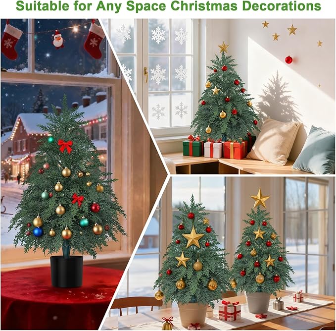 - 【Zero Maintenance】Say goodbye to watering, pruning, or cleaning up fallen needles. This faux cedar tree retains its perfect shape and color without any care—ideal for busy homeowners and commercial spaces