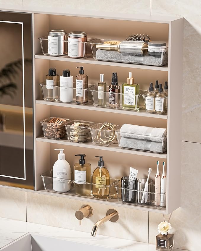 25 PCS Plastic Drawer Organizers Set, 4 Sizes Vanity Organizer, Makeup and Desk Drawer Organizer Trays, Organization and Storage for Makeup, Bathroom, Kitchen Utensils and Office (Clear)