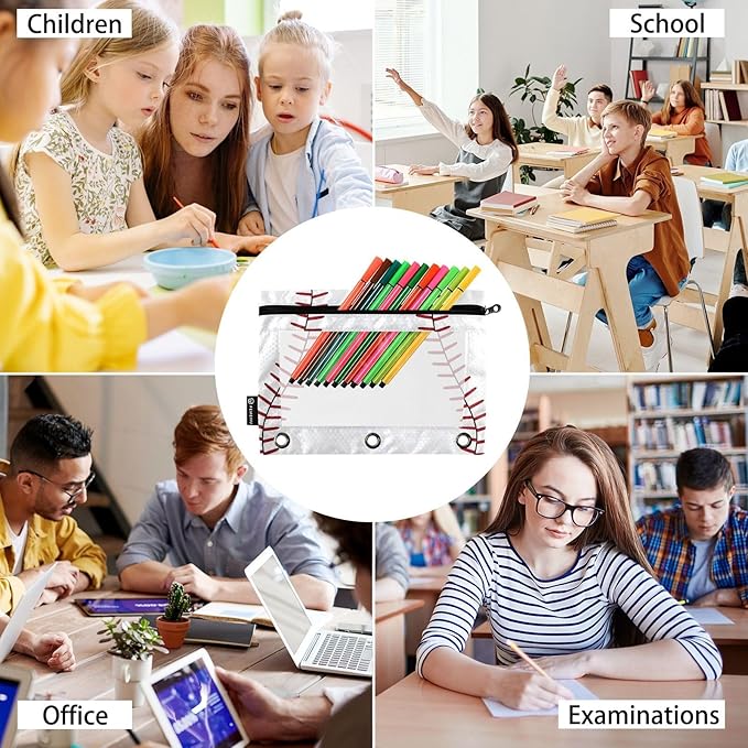 - Clear PVC Window Pencil pouch: Clear PVC window design, allows you to see items inside, helps you to find your things easily.Zippered pencil pouches have 3 holes,suitable for standard 3 ring binders.