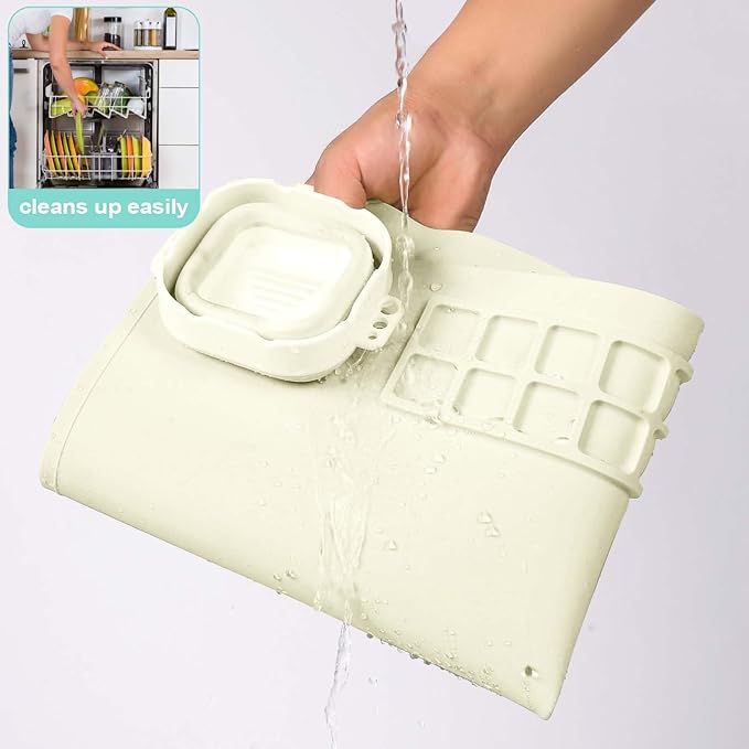 - [LARGE SILICONE MAT] - The size of the silicone artist mat with a water cup is 20×16 inches. The slightly raised edge keeps everything on the art mat.