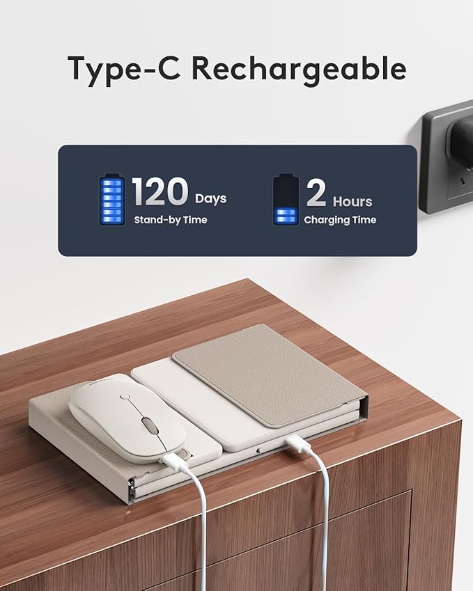 - 【Quiet Design & Adjustable DPI 】 Silent scissor switch keys and non-slip PU leather bottom allow you to work with full concentration! Innovative seamless metal hinge design lets you get your own familiar layout! Smooth typing experience and precise cursor control make it a perfect match for tablet, phone, laptop and PC. Type easily without worrying that the tapping sound may disturb others!