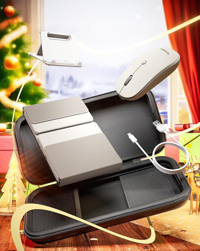 - 【Portable Case & Big Convenience】 Samsers Foldable Keyboard and Mouse with Case, weighs only 21 ounces. Sturdy and stylish case organizes all your essentials neatly, including folding keyboard and mouse, phone holder, charging cable! Maximum convenience for you with minimum weight and size! Not just a keyboard, but a travel solution!
