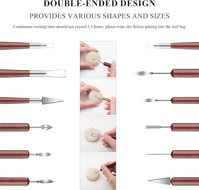 - 【Unique Design】 - Each clay tools sculpting tool has its own unique design, it can be engraving, molded into shapes, textures, poke holes and other details to help your pottery creative realization.