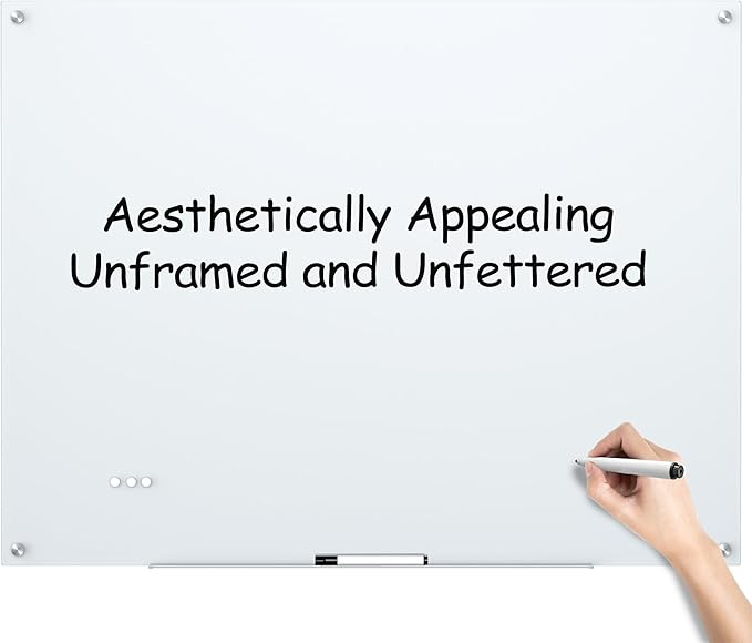 - 【Frameless Floating Design】Minimalist borderless design with refined silver grommets creates a modern, floating effect. Adds sophistication to any office, home, or commercial setting—this glass dry-erase board is perfect for frequent writing
