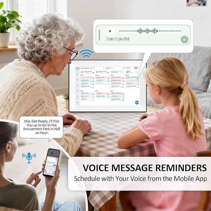 - [Unique Competitive Advantage] This innovative voice messaging feature sets our product apart by offering families a more convenient and personalized way to communicate. It is especially ideal for elderly individuals who may struggle with reading small print and young children who are not yet able to read or type. If voice messages (in any dialect) are sent from the free app, recipients can easily listen to them with a simple tap, promoting independent use.