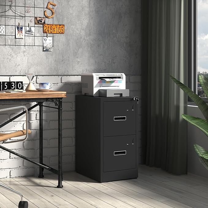 2 Drawer Metal File Cabinet with Lock Heavy Duty Home Office Steel Vertical Filing Lockable Cabinets for Legal/Letter Size File,Assembly Required