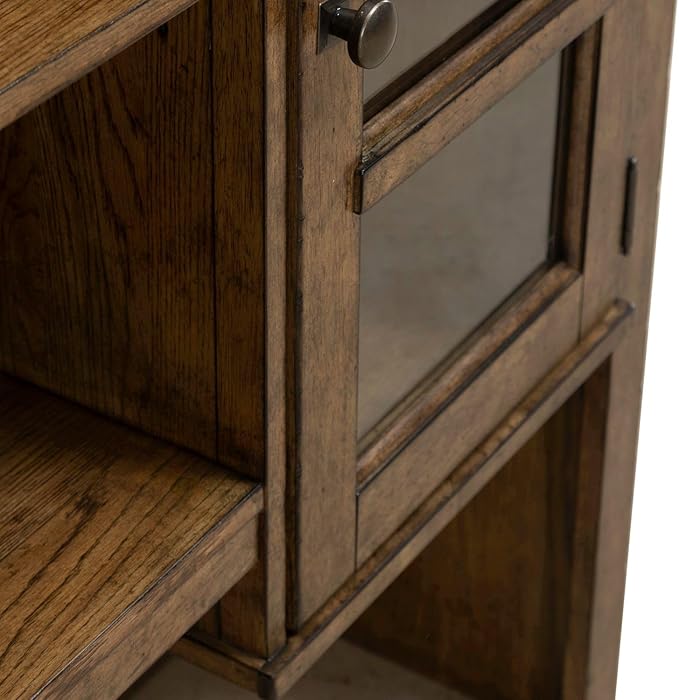 Liberty Furniture Carolina Park 5 Piece Jr Executive Set with Desk, Credenza & Hutch for Home Office- Amber Brown Oak Wood
