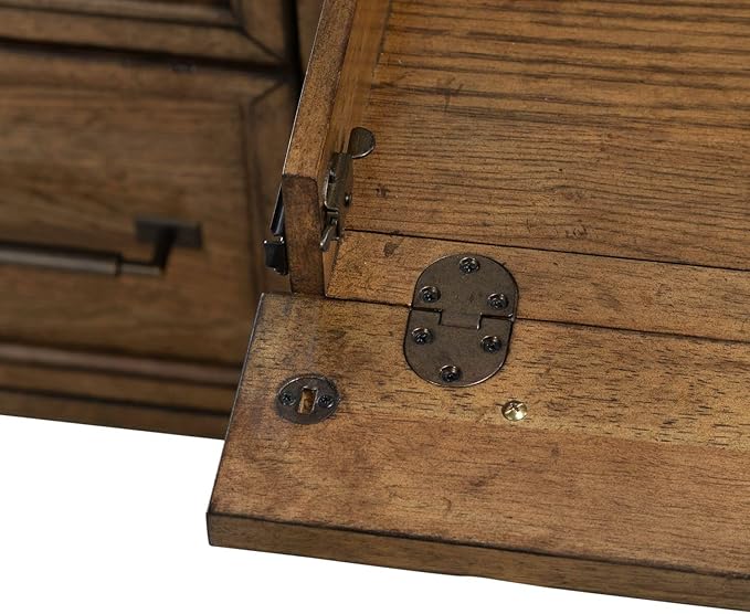 Liberty Furniture Carolina Park Jr Executive Desk with Keyboard Tray, Locking File Storage for Home Office- Amber Brown Oak Wood