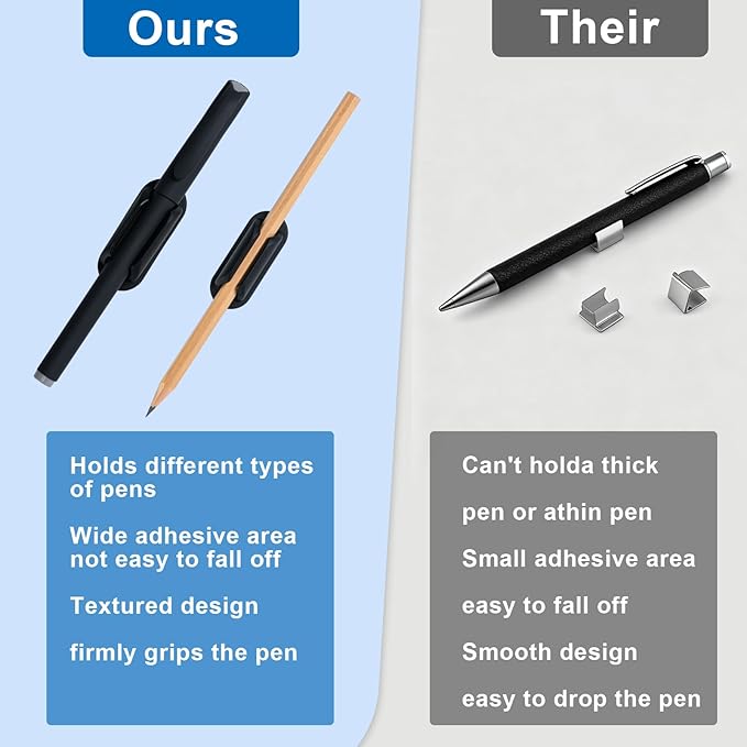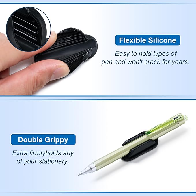 - Designed for Pencils and Small Pens: Engineered with a rugged double-sided texture, our upgraded adhesive pen holder is built to flawlessly grip pencils and pens within the 7.5mm - 10mm diameter range. Note: Not suitable for markers