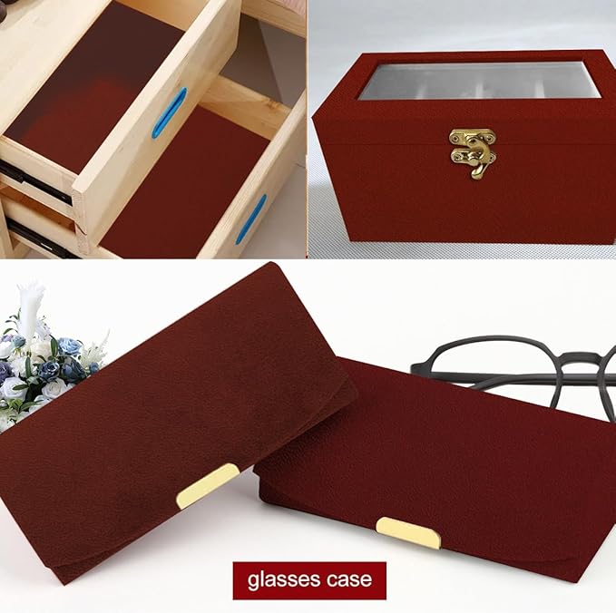 Self Adhesive Grain Velvet Flocking Self Adhesive Felt Fabric, Peel and Stick Velvet Wallpaper Soft Velvet Drawer Liner Velvet Lining for Jewelry Drawer Box Dresser Cabinets Shelve 14.1" x 117"