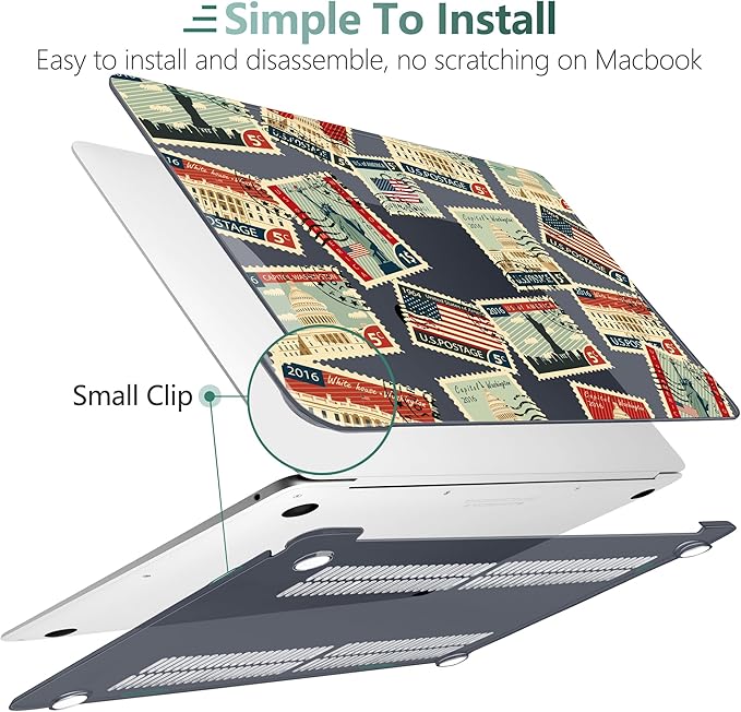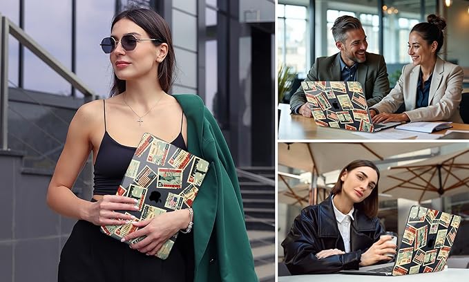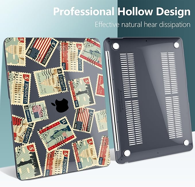 DONGKE for MacBook Air 13 Inch Case 2021-2018, Compatible with A2337 M1 A2179 A1932 Support Retina Display & Touch ID, Hard Shell Plastic Cover with Keyboard Skin - Classic Stamps