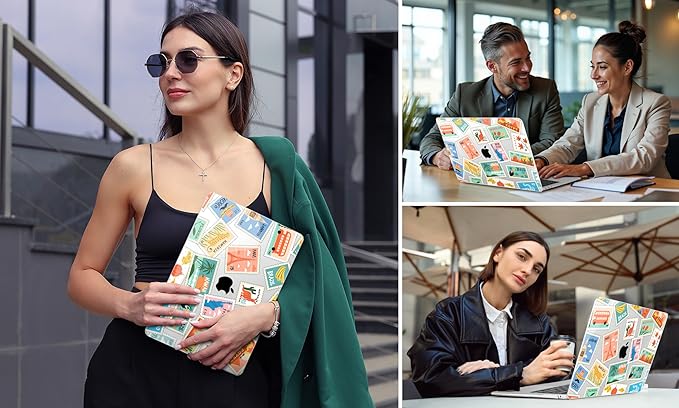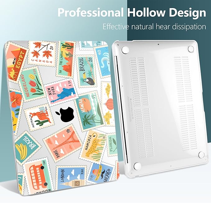 DONGKE for MacBook Air 13 Inch Case 2021-2018, Compatible with A2337 M1 A2179 A1932 Support Retina Display & Touch ID, Hard Shell Plastic Cover with Keyboard Skin - Post Stamps