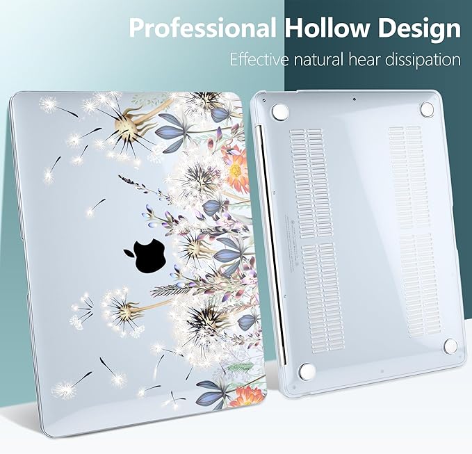 DONGKE for MacBook Air 13 Inch Case 2021-2018, Compatible with A2337 M1 A2179 A1932 Support Retina Display & Touch ID, Hard Shell Plastic Cover with Keyboard Skin - Dandelion