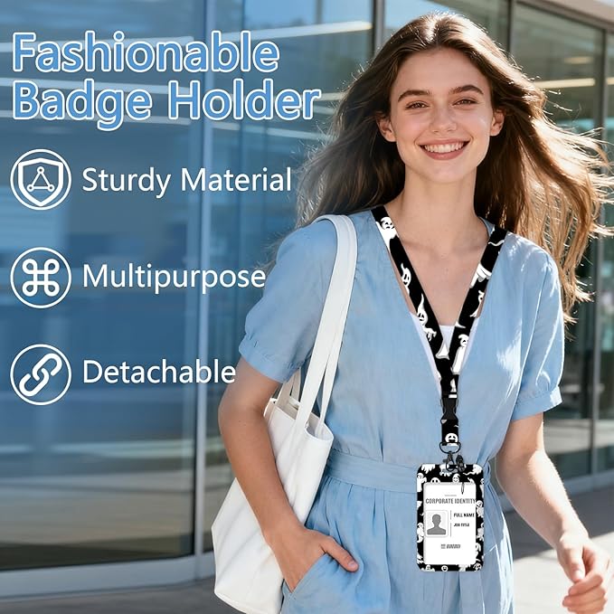 - 【Unique Design】Cute Halloween badge lanyard is with its special design:Ghost pattern.Leave behind the simple,stereotypical card clips and upgrade to our fashionable and fun card holder that,will add a pop of vivid colors to your cards and keys, breathing new life into your daily routine