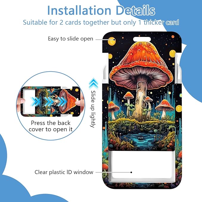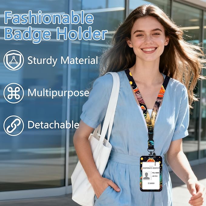 - 【Unique Design】Cute badge lanyard is with its special design:Mushroom pattern.Leave behind the simple,stereotypical card clips and upgrade to our fashionable and fun card holder that will add a pop of vivid colors to your cards and keys,breathing new life into your daily routine