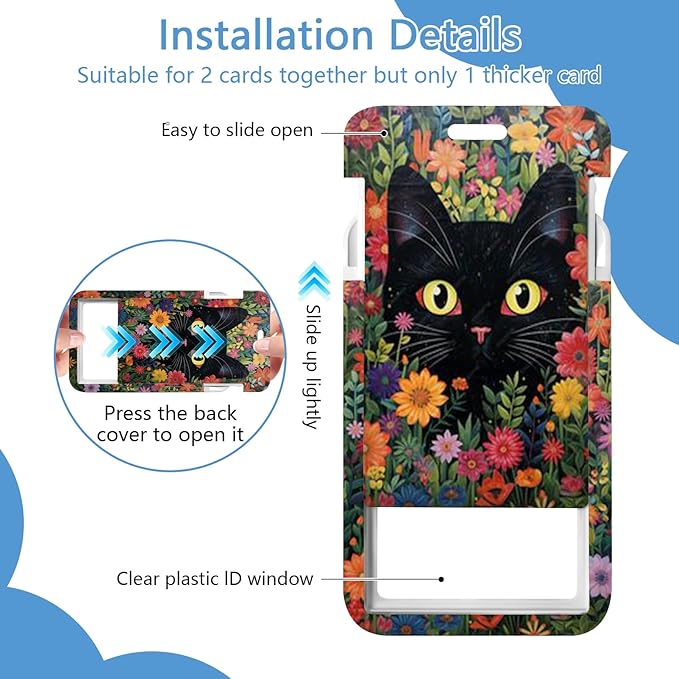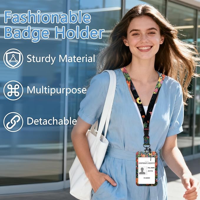 - 【Unique Design】Cute badge lanyard is with its special design:Black Cat Flower pattern.Leave behind the simple,stereotypical card clips and upgrade to our fashionable and fun card holder that will add a pop of vivid colors to your cards and keys,breathing new life into your daily routine