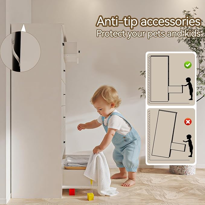 - ✔【High-quality Materials】FJTJBSI tall dresser is crafted from high-quality MDF, making it exceptionally sturdy and durable. Its tabletop can support up to 300 pounds, while each drawer holds 50 pounds—more than enough to carry the weight of all your belongings.