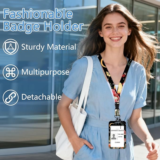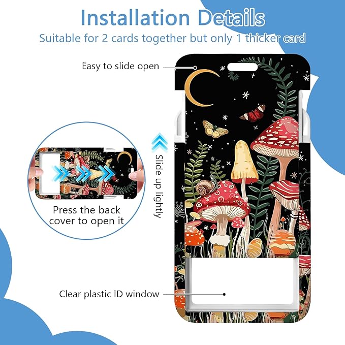 - 【Unique Design】Cute badge lanyard is with its special design:Mushroom Butterfly Moon pattern.Leave behind the simple,stereotypical card clips and upgrade to our fashionable and fun card holder that will add a pop of vivid colors to your cards and keys,breathing new life into your daily routine
