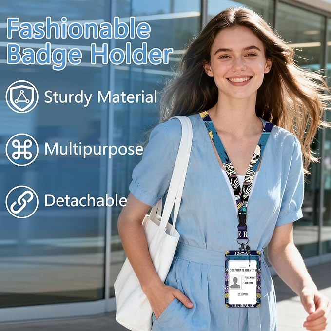 - 【Unique Design】Cute badge lanyard is with its special design:Skeleton Book pattern.Leave behind the simple,stereotypical card clips and upgrade to our fashionable and fun card holder that will add a pop of vivid colors to your cards and keys,breathing new life into your daily routine