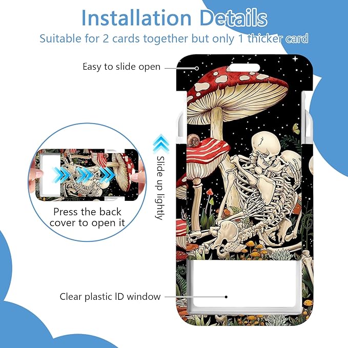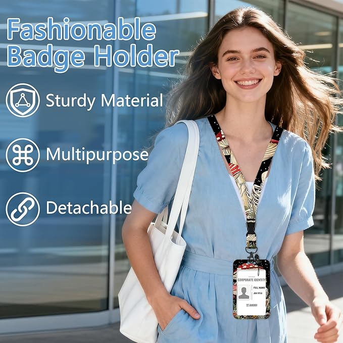 - 【Unique Design】Cute badge lanyard is with its special design:Skull Mushroom pattern.Leave behind the simple,stereotypical card clips and upgrade to our fashionable and fun card holder that will add a pop of vivid colors to your cards and keys,breathing new life into your daily routine