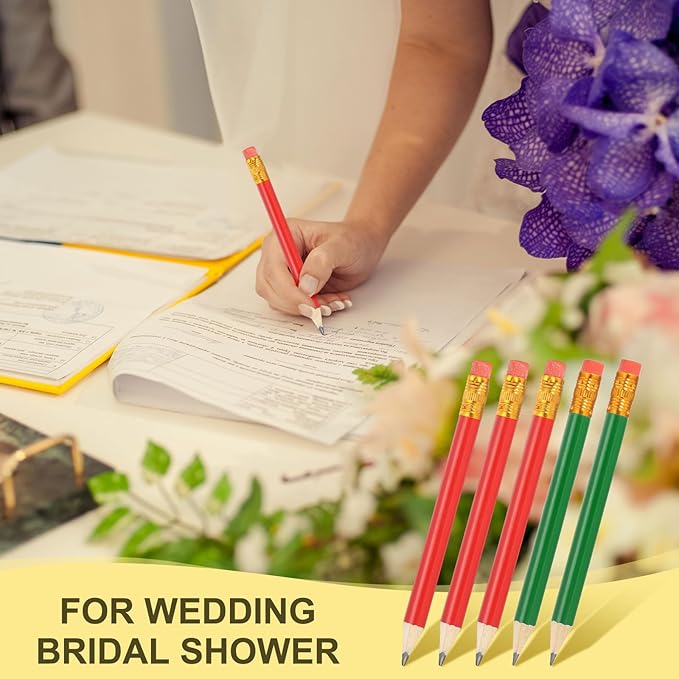 MECCANIXITY Golf Pencils with Erasers, 4" HB Mini Half Pencils Pre Sharpened Small Pens for Wedding Bridal Shower Game Office Writing Drawing(Green/Red, Pack of 50)