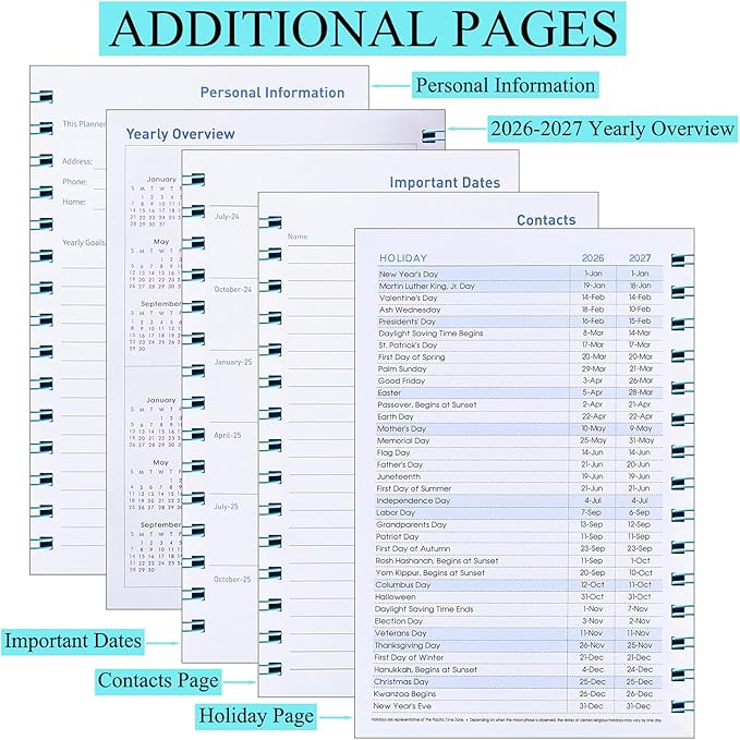 - January 2026-June 2027 day planner with 18 months of monthly and weekly pages for easy year-round planning, 2 pieces Calendar stickers (January 2026-December 2027) are included. Calendar planner features full monthly view pages for each month and full weekly view for more detailed planning.