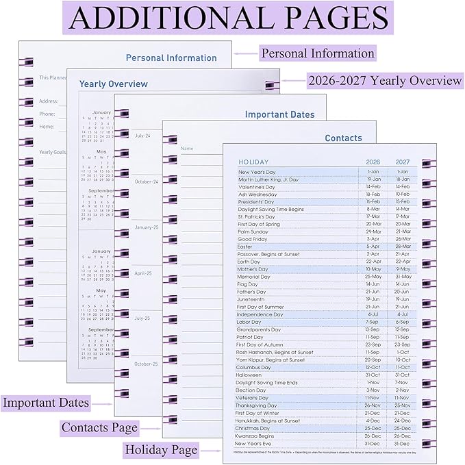 - January 2026-June 2027 day planner with 18 months of monthly and weekly pages for easy year-round planning, 2 pieces Calendar stickers (January 2026-December 2027) are included. Calendar planner features full monthly view pages for each month and full weekly view for more detailed planning.