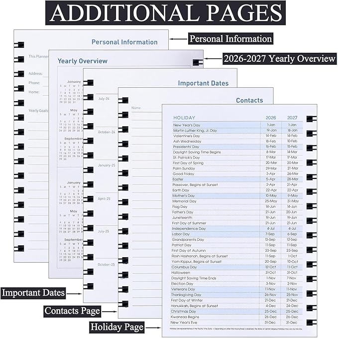 - January 2026-June 2027 day planner with 18 months of monthly and weekly pages for easy year-round planning, 2 pieces Calendar stickers (January 2026-December 2027) are included. Calendar planner features full monthly view pages for each month and full weekly view for more detailed planning.