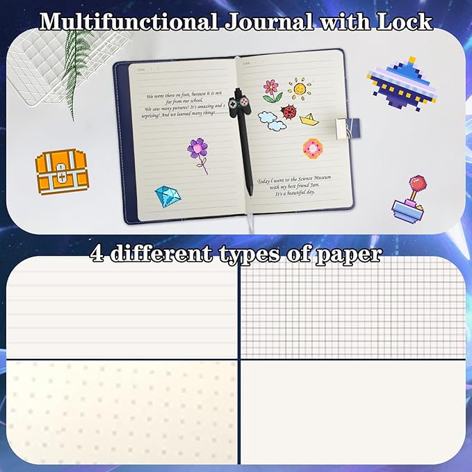 - Journal with Lock for Boys - The game theme journal for boys with a creative metal combination lock, and you can express yourself bravely with no worries! It is a safe place to store your ideas and secrets. No one but you can open this secret diary