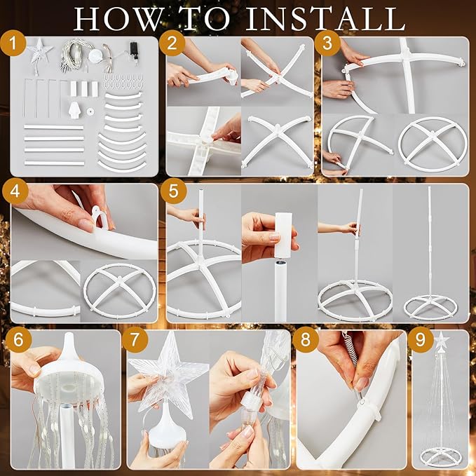 - 1 Pack Design: Includes 1 pcs 12ft foldable outdoor Christmas cone trees with 190 LED lights each, 12 strips plus star topper. Weather-resistant build ensures theses lighted Christmas trees lasting performance indoors or outdoors for holiday, party, or event decoration