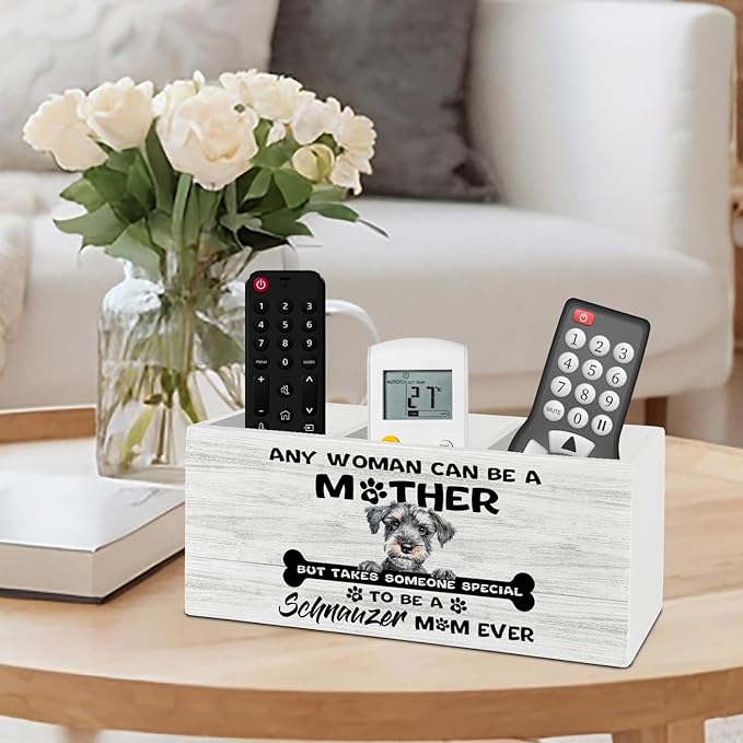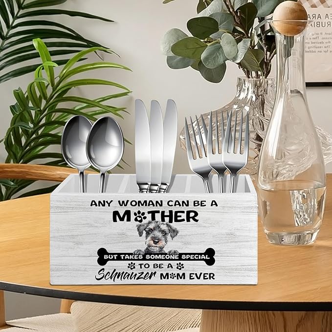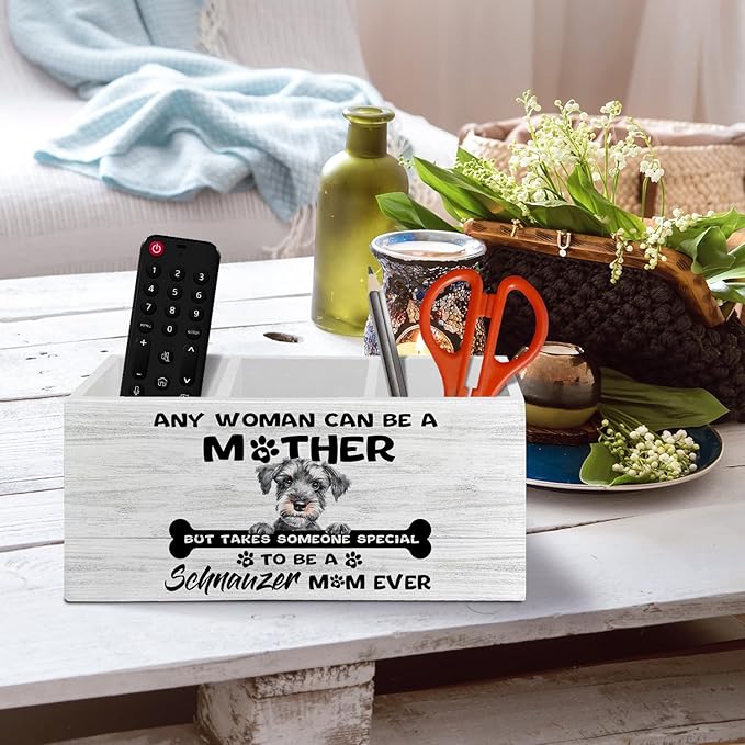 Schnauzer Gifts Pen Pencil Holder Organizer for Desk Accessories, Dog Mom Lovers Owner Gifts for Women, to Be a Schnauzer Mom Ever Wooden Box Sign Desk Decor for Home Office Decoration