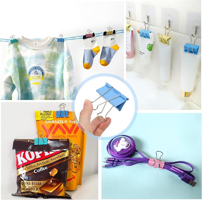 - 【Wide Application】These cute binder clips are perfect for office, home, and school daily use, suit for students, teachers elementary and clerical workers. In addition, they can also be used as key chains, keyboard clips, creative games, data cable storage, photo clips, garbage bag clips, sealing clips, food spoilage prevention clips, and as gifts on festivals