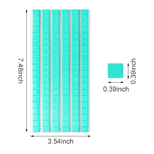 - Packaging content: Feosky Adhesive putty, 120 pieces per pack These adhesive putty are pre cut into squares, each square measuring 0.4 inches x 0.4 inches (1 cm x 1 cm), and can be reused to reduce waste.