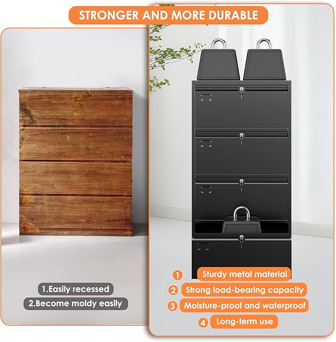 - 【Upgrade Lateral File Cabinet】The new design 4 Locks file cabinet is made of heavy duty steel material, and the surface with powder coating is very smooth, which can avoid rust. Due to their metal surface, metal storage cabinets are easy to clean and maintain.
