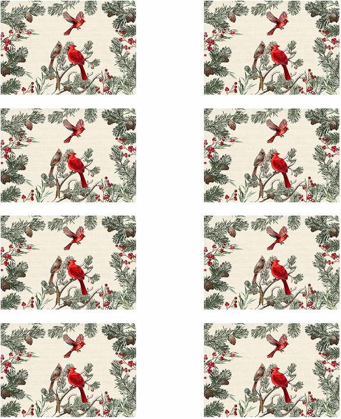 XCHI Cardinal Birds Winter Pine Tree Christmas Xmas Placemats Set of 8 Table Mats for Party Home Kitchen Dining Table Decorations 12x18 Inch